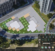Главная фишка — зонирование без сетки. Инструмент работает на векторах, так что можно рисовать участки любой формы: треугольники, кривые, острые углы. Здания подстраиваются под форму автоматически. Вместо фиксированных моделей используется процедурная генерация: через инструмент Architect можно менять высоту, ширину, цвета и фасады, создавая уникальный силуэт города.