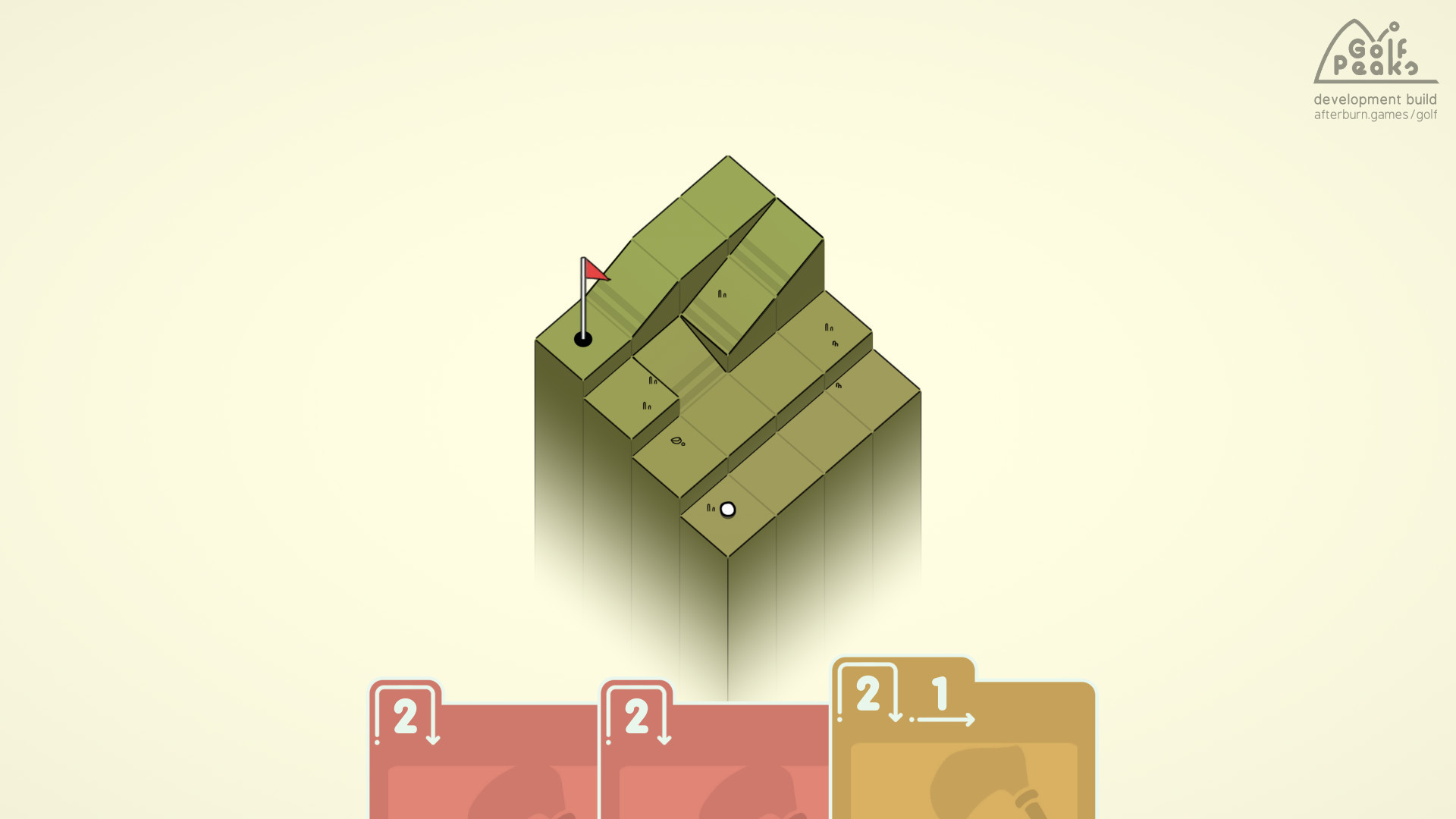 Задача заключается в том, чтобы справится с игрой в гольф на горных вершинах. Здесь имеется карточная система продвижения, которая будет периодически фиксировать твои достижения и прогресс. Покоряя высокие вершины, ты будешь проходить все дальше и дальше по испытаниям. Для завершения тебе даётся около семидесяти уровней, а для исследования целых шесть, уникально исполненных миров. Чтобы эффективно справится с тем или иным заданием, тебе даётся ряд блоков, с помощью которых ты можешь самостоятельно выстраивать башни – арены.