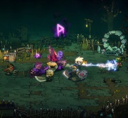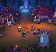 Между забегами герой возвращается в Лагерь, где NPC вроде Армстронга и Равии помогают тратить ресурсы на постоянные улучшения и развитие базы, делая следующие попытки чуть легче и богаче на возможности.