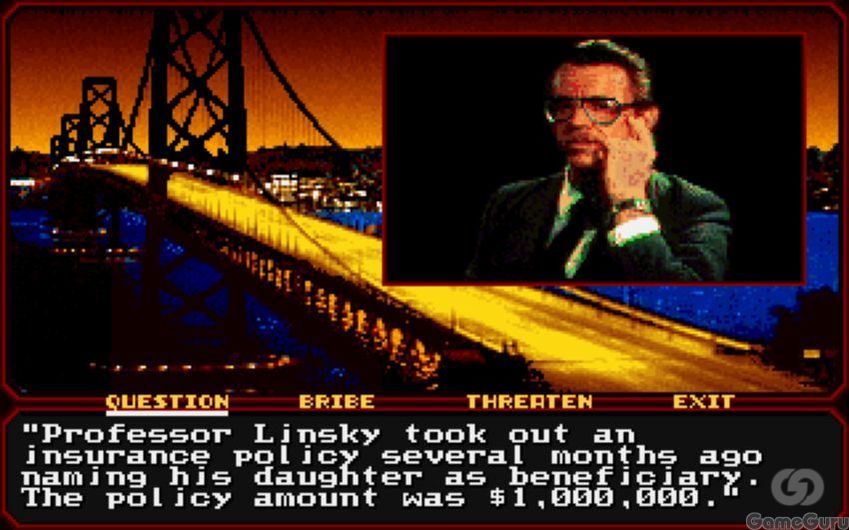 В начальных титрах можно заметить, что у игры аж четыре геймдизайнера, что многовато для адвечнуры. Это сложно представить, но в этой игре 1989 года есть «свободное» перемещение по огромному миру на летающем автомобиле. Мы и правда можем покататься по не особо выразительному городу и даже увидеть пару достопримечательностей, но войти мы можем только в сюжетно важные места. Большинство игроков попросту будет пользоваться функцией автопилота, потому что управление машиной крайне неудобное и предельно не нужное. Летать из точки в точку придётся много, такие перемещения и будут составлять большую часть процесса расследования.