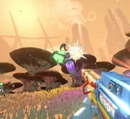 Каждая миссия — это отдельное задание с возможностью использовать транспорт, собирать ресурсы и модифицировать оружие. Система улучшений позволяет не просто усиливать характеристики, но и менять поведение оружия — например, превратить магазин в метательное взрывное устройство. Визуальный стиль яркий и слегка абсурдный, а атмосфера наполнена юмором и хаосом. Игра не является рогаликом, но предлагает высокую реиграбельность за счет разнообразия миссий и сборок.