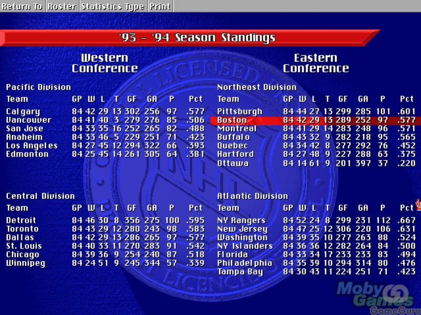 Скриншоты NHL Hockey '95
