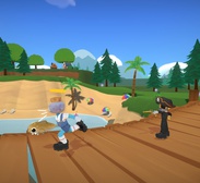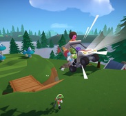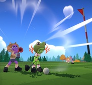 Это безумный гольф на выживание, где восемь человек одновременно лупят по мячам и пытаются добраться до лунки быстрее остальных. Здесь не нужно ждать своей очереди: все стартуют разом, создавая на поле настоящую свалку.