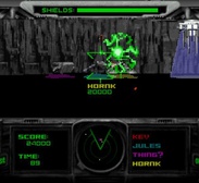 Из особенностей игрового процесса можно выделить две. Во-первых, у вас есть радар (расположен в нижней части игрового экрана), где отображается расположение врагов на уровне, что существенно облегчает игру. Во-вторых, несмотря на очень красивый дизайн и немаленькие размеры, каждый уровень – это всё-таки полностью автономная зональная единица, если угодно – «карта». Её нужно просто очистить, тогда попадём на следующую. Никаких «загадок», даже самых примитивных, никакого продвижения вперёд – только уничтожение врагов в данной конкретной локации. Кстати говоря, «арены» различаются между собой не только внешним видом: если на одних для прохождения требуется полная зачистка местности, то на других – лишь достижение определённого «счёта» (то есть числа убитых врагов).