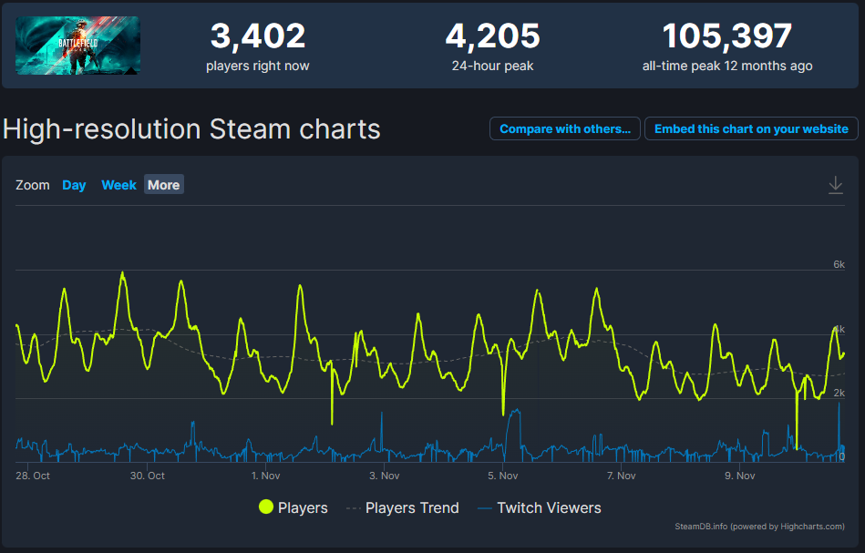 Также EA DICE заявила, что добавление игры в подписочные сервисы не означает прекращение работы над ней. Команда уже начала трудиться над четвертым сезоном. Возможно, именно Game Pass может спасти игру и позволит ей продержаться чуточку дольше. Отметим, что на момент написания заметки, онлайн игры не превышал 3500 человек.