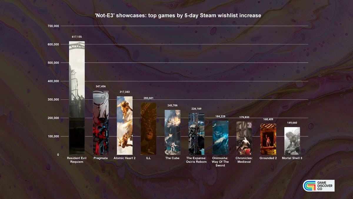 Аналитики портала gamediscover подвели итоги Summer Game Fest. Они использовали показатель новых подписчиков на страницах анонсированных во время презентаций игр, а также подсчитали количество геймеров, которые добавили что-то в «вишлист».