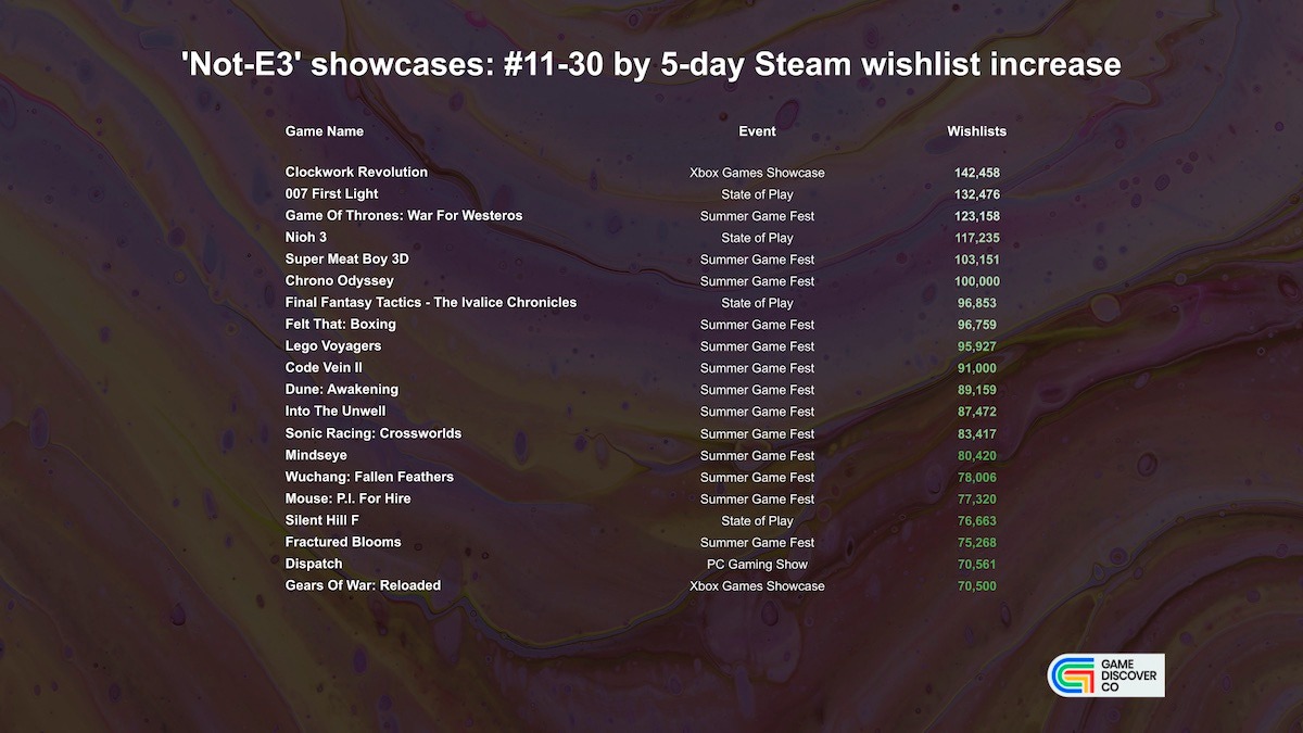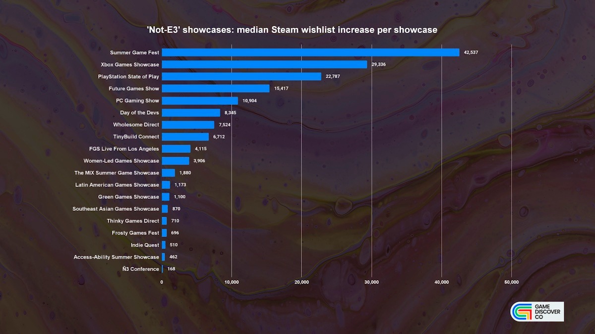Наконец, еще одна статистика: Summer Game Fest вызвал наибольшее число добавлений игр в «вишлисты». На второй строчке оказалась Xbox Games Showcase, которая обошла PlayStation State of Play.