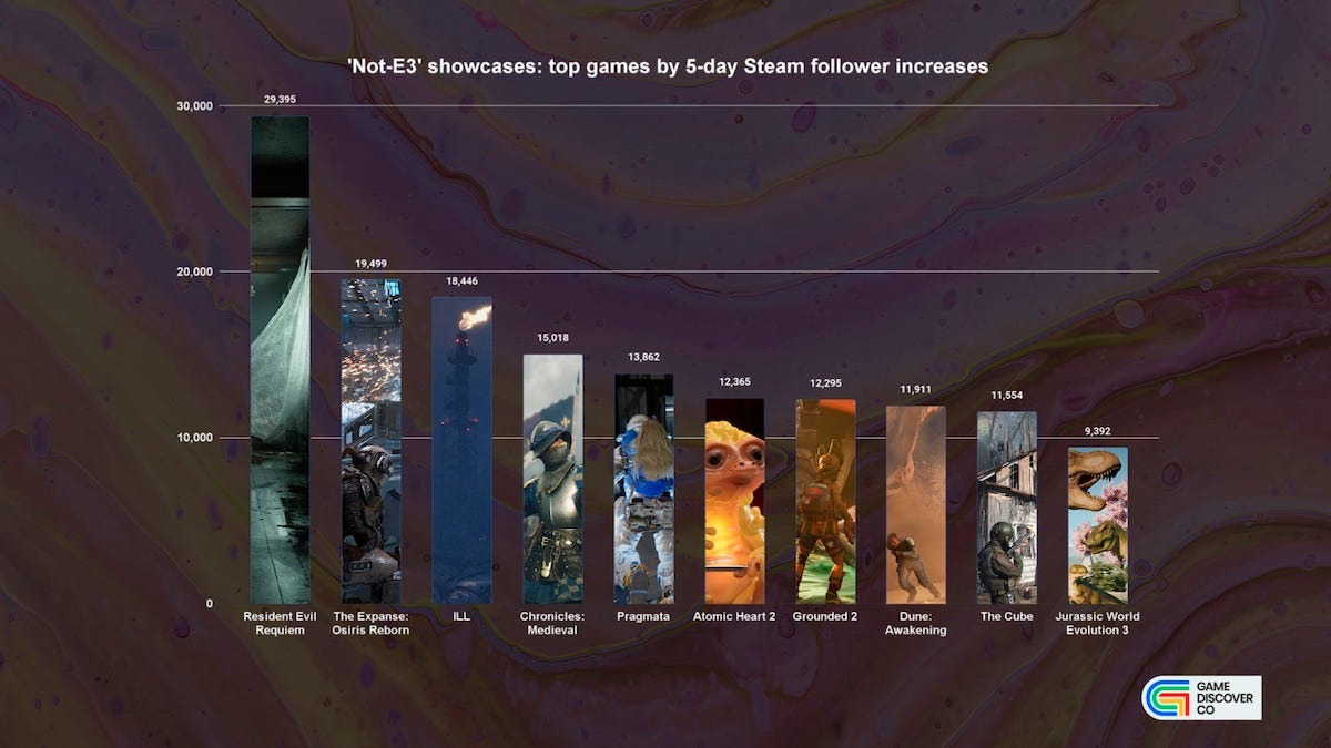 Немного статистики. Журналисты насчитали 704 уникальные игры, которые появились в Steam в период проведения «не-E3». Речь о пятидневном периоде проведения презентаций, включая самые известные: церемонию открытия, шоу Xbox и так далее.