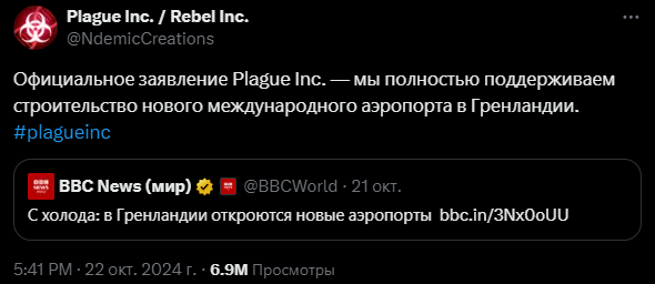 Эта новость несказанно обрадовала многих жителей Гренландии, но на нее также отреагировали разработчики Plague Inc., симулятора смертельных болезней.