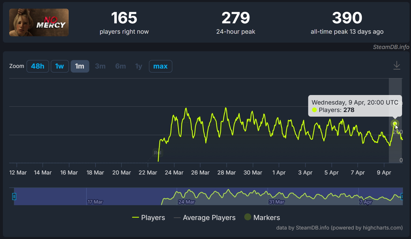 У No Mercy нет возрастного рейтинга от PEGI, и игра не получила классификацию от британского регулятора Ofcom. Единственное, что отделяет игрока от запуска No Mercy, — это окно, требующее подтвердить, что пользователю уже исполнилось 18 лет.