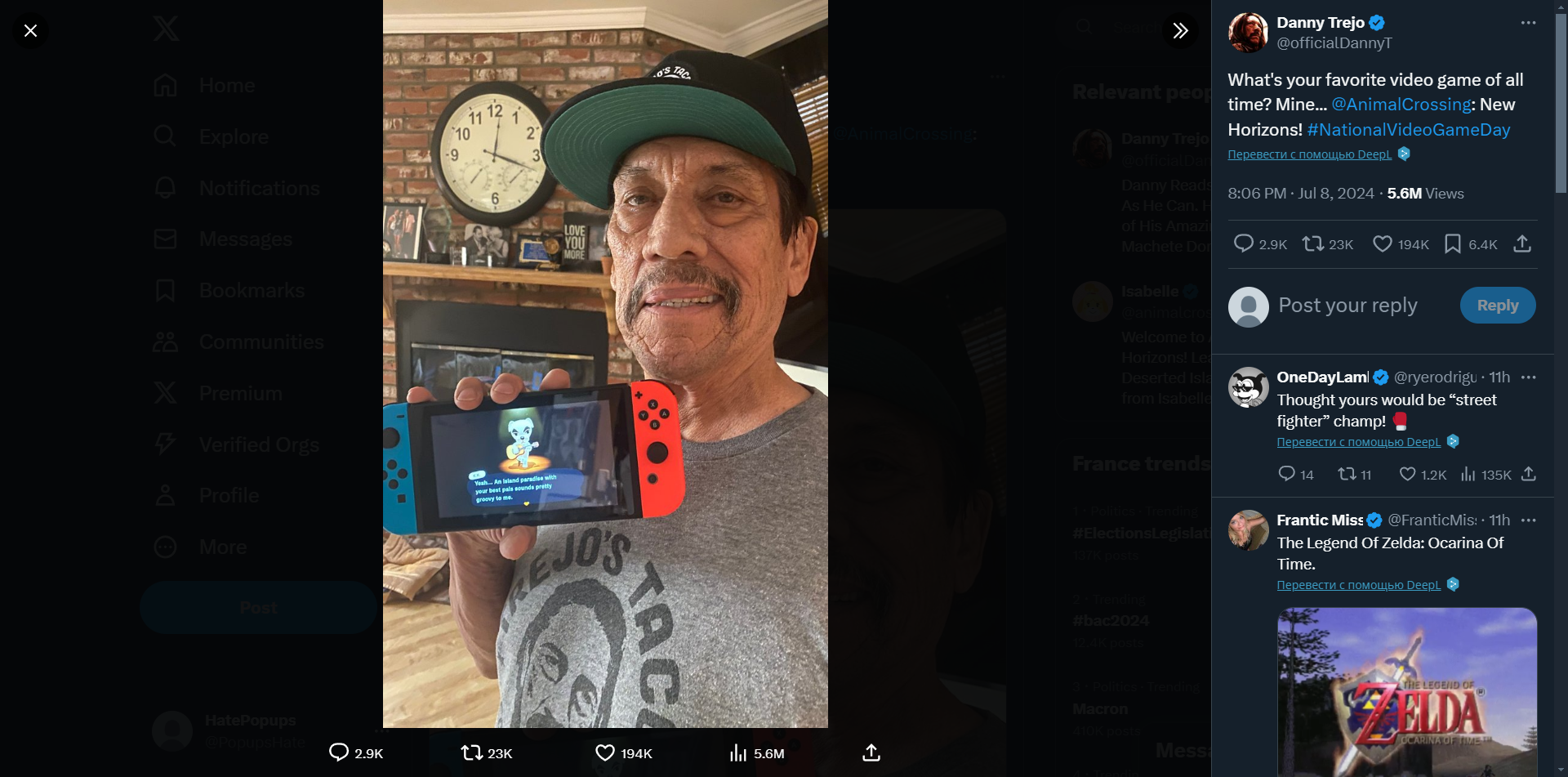 80-летний Дэнни Трехо шокировал многих фанатов кинематографа и видеоигр. Актер не только предложил обсудить любимую видеоигру, но и назвал свою. Как оказалось, брутальный дядя из Мексики обожает Animal Crossing: New Horizons.