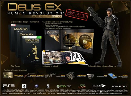 Square Enix анонсировала коллекционное издание киберпанковой action/RPG Deus Ex: Human Revolution. Строго ограниченный в тираже комплект будет распространяться на территории некоторых стран Европы, Австралии и Новой Зеландии. Стоимость набора пока не известна. Состав следующий:
