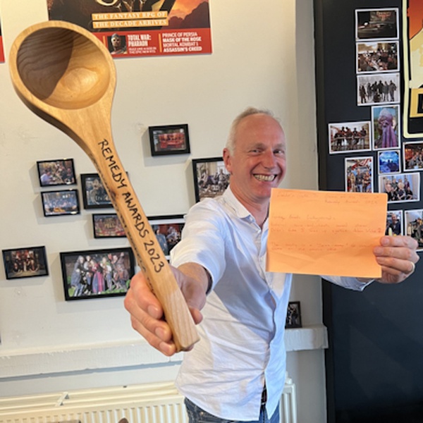 Свен Винке рассказал, что 18 июня эпохальная Baldur's Gate 3 удостоилась «лучшей из премий» — победы на шуточной церемонии Remedy Awards 2023. Притом авторы Alan Wake не ограничились лишь поздравительным письмом: они прислали особый приз главе Larian. С виду награда напоминает огромную ложку, но согласно едва читаемому тексту подарка — на самом деле это ковш для сауны: