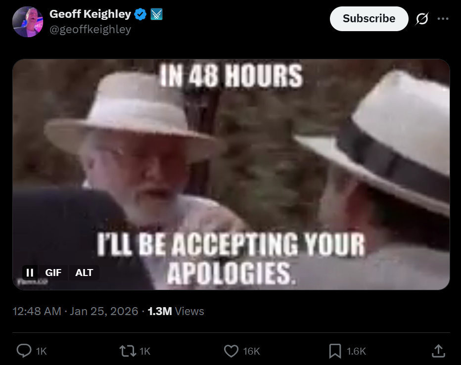 За пару суток до выхода шутера Кили опубликовал вызывающую гифку. На ней сказано, что через 48 часов Джефф «будет принимать ваши извинения».