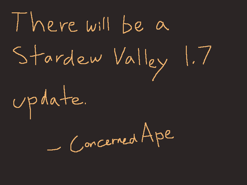 «Хорошо, я рассказал это вчера на концерте, и теперь секрет перестал быть секретом, так что подтверждаю для всех: будет обновление Stardew Valley 1.7. Даты выхода или примерных сроков нет. Но оно точно будет», — написал Барон и добавил к посту милую картинку.