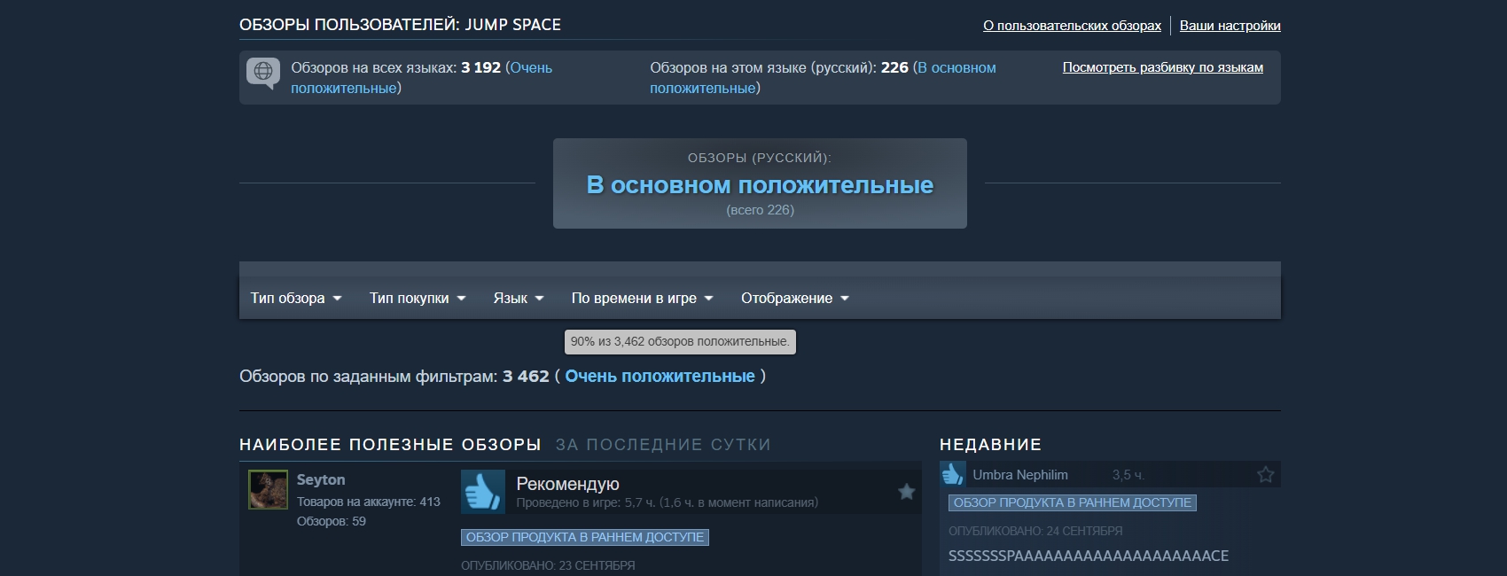 19 сентября в ранний доступ Steam вышел кооперативный PvE-шутер Jump Space. За минувшую неделю новинка привлекла десяток тысяч игроков и собрала свыше 3 тысяч отзывов при рейтинге в 90%. Впрочем, в положительных отзывах нередко встречаются как критика, так и предложения подождать будущих обновлений.