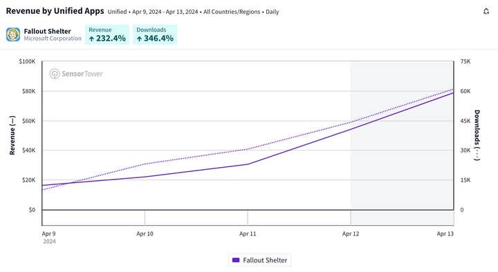 Аналитическая компания Sensor Tower сообщает, что Fallout Shelter стала зарабатывать больше после выхода сериала Amazon. Аж в четыре раза. Правда, поразить вас цифрами Bethesda все равно не сможет. На фоне крупных игроков, например HoYoverse или создателей Monopoly Go!, это все еще смешные цифры. До выхода сериала Fallout мобильная Shelter зарабатывала около 20 000 долларов ежедневно. После выхода шоу игроки стали тратить заметно больше — прибыль увеличилась до 80 000 долларов.