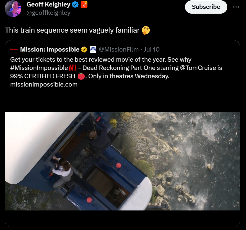 В США состоялась премьера «Миссии невыполнима: Смертельная расплата. Часть 1». Аналитики говорят, что фильм соберет больше всех остальных «Миссий» на старте. А геймеры говорят, что Том Круз «украл» сцену с поездом из Uncharted.
