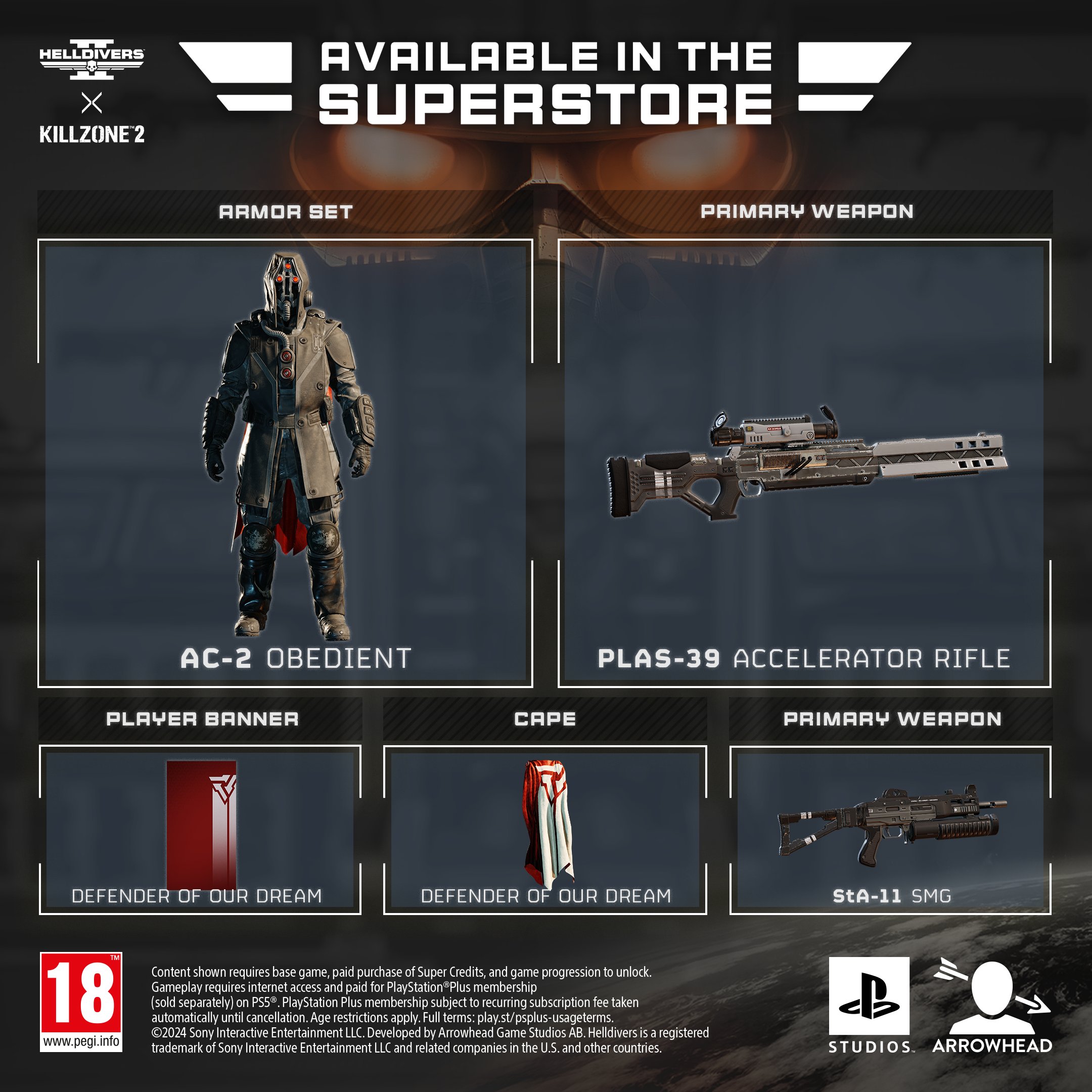 Во-первых, сегодня мы бесплатно раздаем вторую волну предметов из серии Helldivers x Killzone. Раздача начнется совсем скоро и пройдет в два этапа. Кроме того, мы продлеваем время нахождения этих предметов в супермаркете с 5 до 10 дней. Также мы изучаем варианты, как можно будет вернуть эти предметы в игру на постоянной основе в будущем».