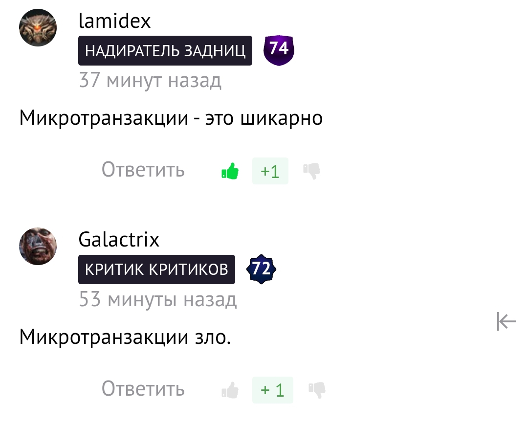 реалии капитализма диктуют свои правила. но адекватные разрабы просто грамотно имплементируют микротранзакции. хорошо бы без них, но это меньшее из двух зол, между дикими ценами на игры и скинами по 2 бакса.