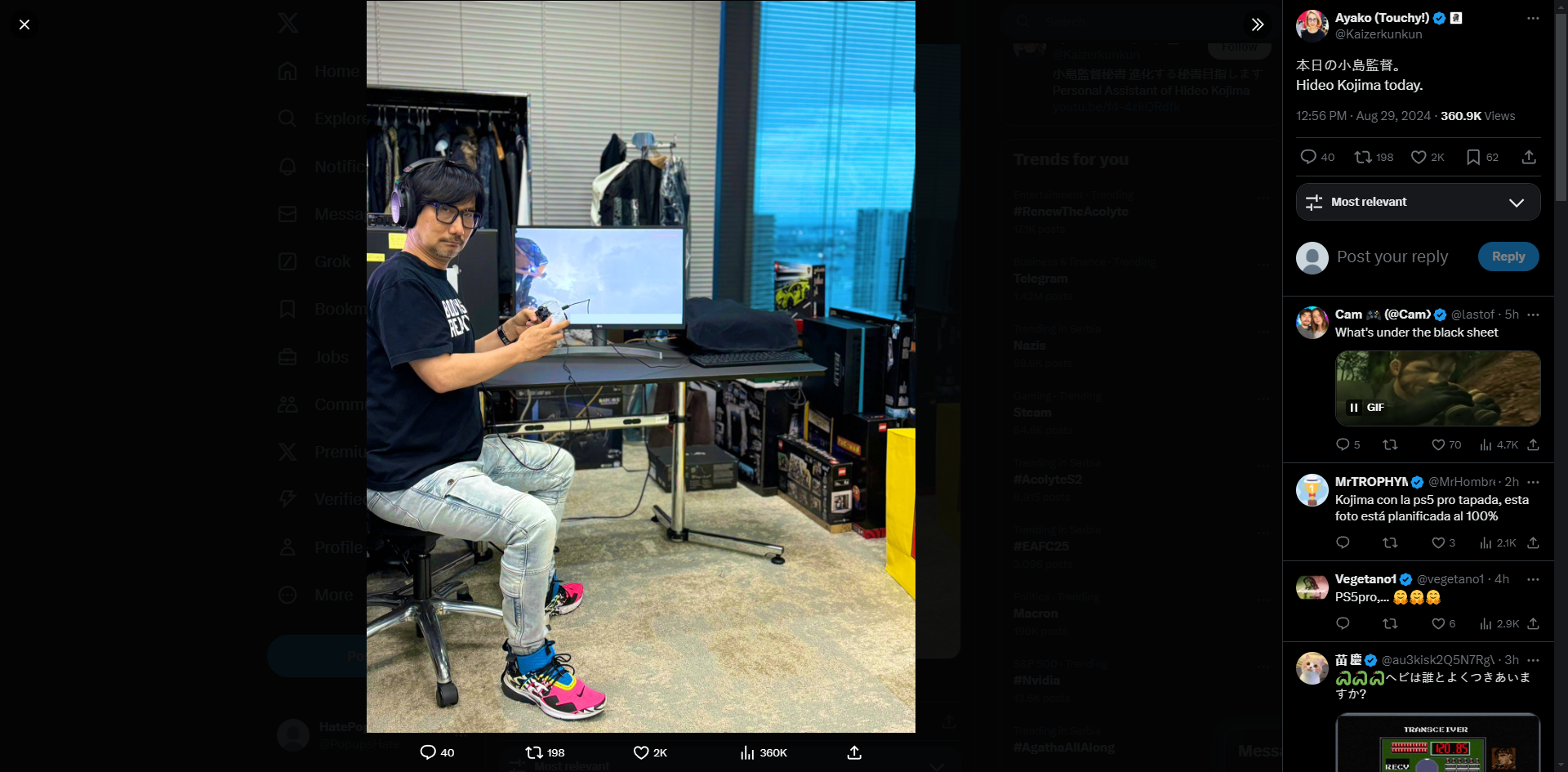 Многие думают, что под тряпочкой PS5 Pro или девкит новой консоли. Другие уверены, что Кодзима не может играть на девките, потому что игры собираются на ПК, даже если они разрабатываются для консолей.