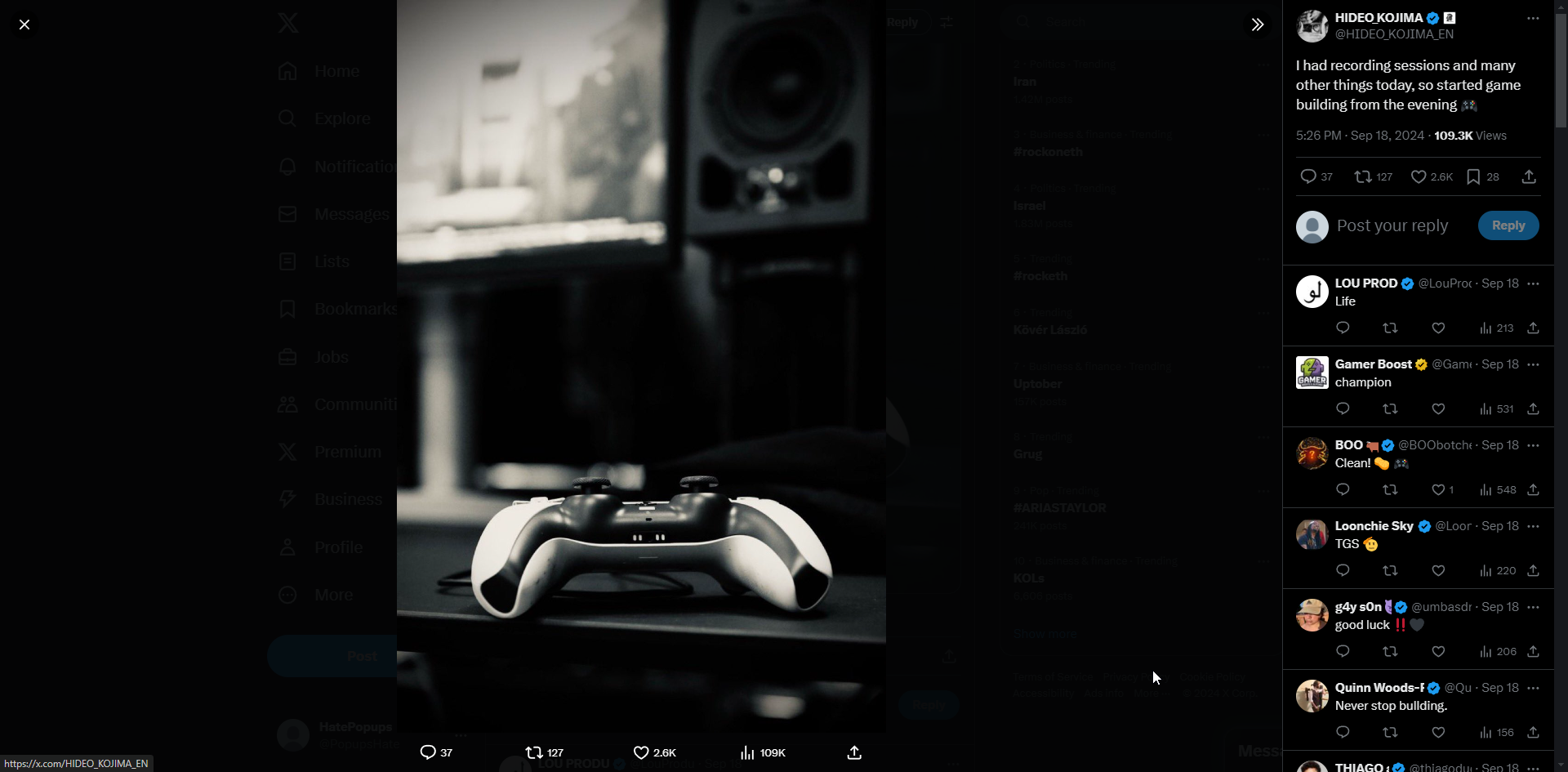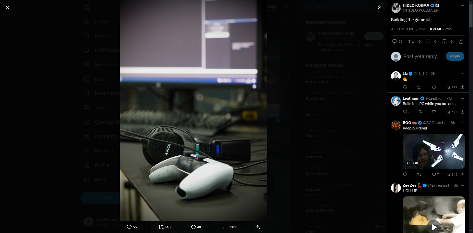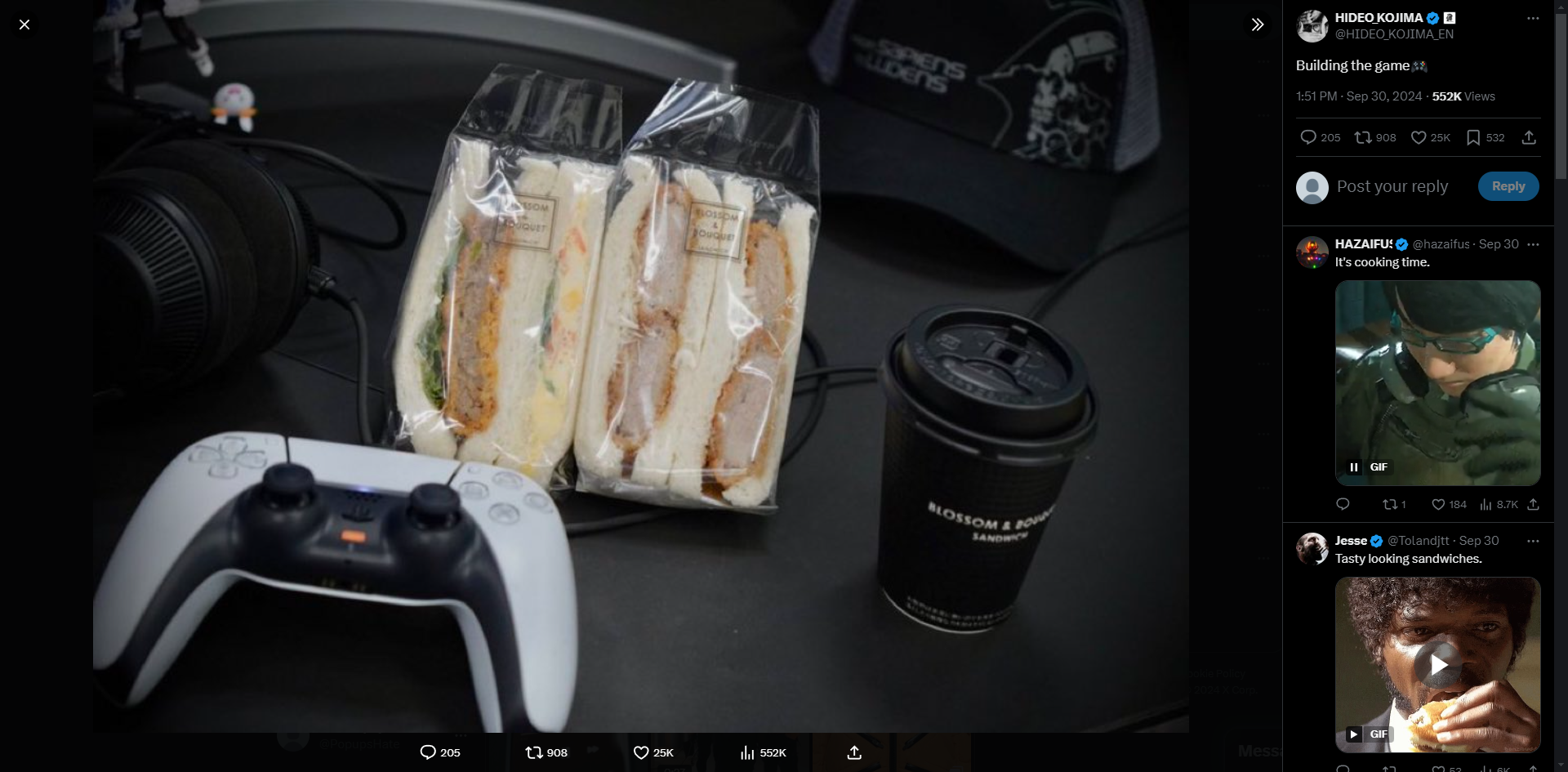 Хидэо Кодзима уже месяц (и даже больше) публикует фотографии с подписью «работаю над игрой». Свои публикации он чаще всего сопровождает фотографией геймпада с крутыми наушниками, ведь он меломан.