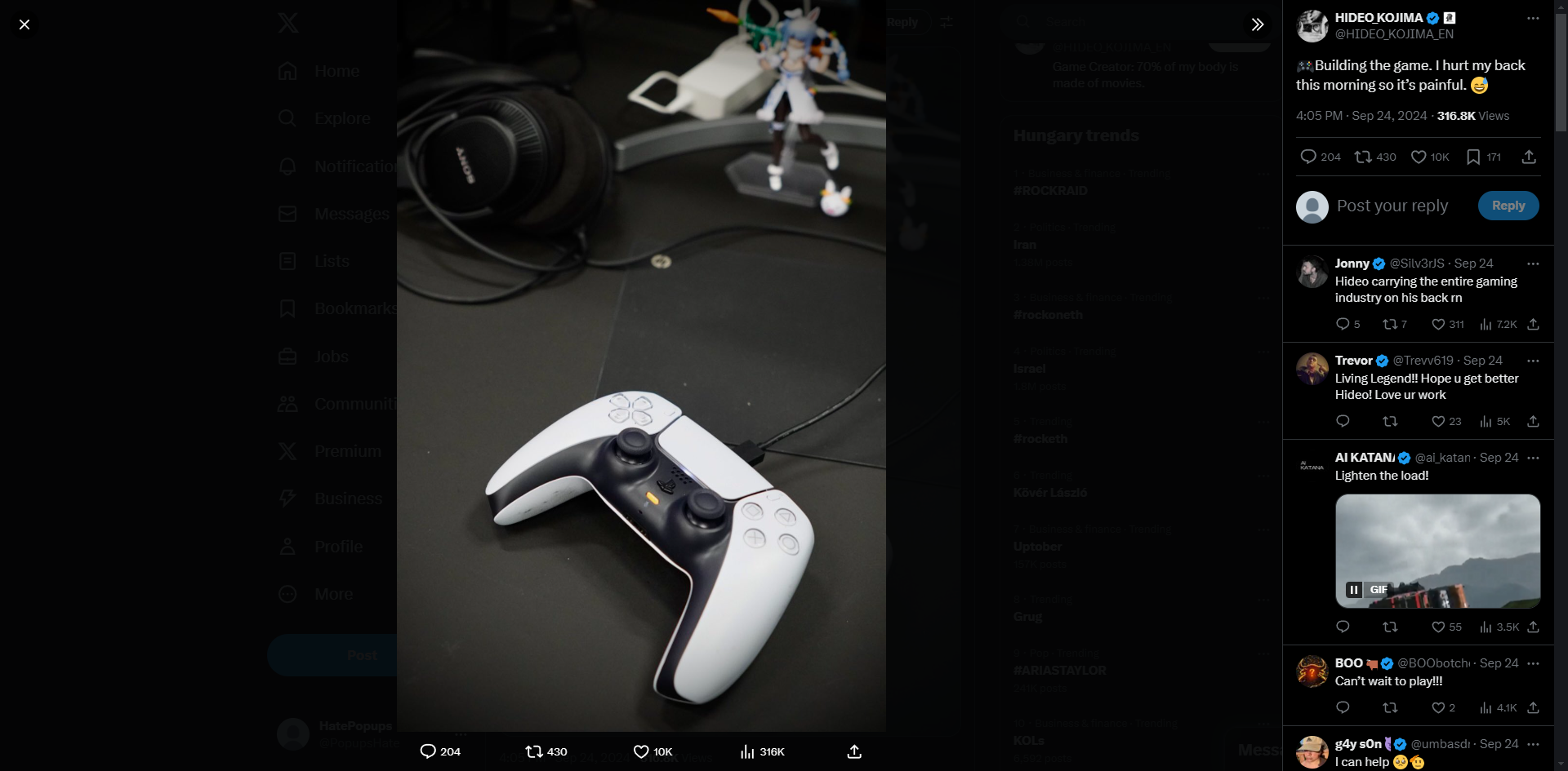 Грязь наблюдается и в других постах Кодзимы в августе. Возможно, это какая-то гениальная отсылка? Или это въевшаяся грязь? Или это не грязь, а повреждение? Царапины? Отсутствие объяснений со стороны Кодзимы сводит с ума геймеров. А мы продолжим следить за состоянием контроллера разработчика. Ведь это лучше, чем новости про Sweet Baby Inc.