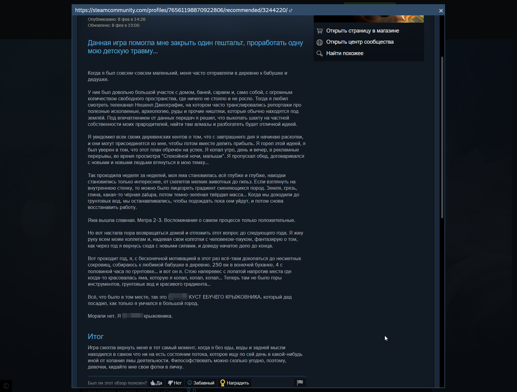 В отзывах, а их свыше 2500, геймеры делятся положительными эмоциями и историями из личной жизни. Поверьте, сюжет ниже достоин экранизации самим Кристофером Ноланом!