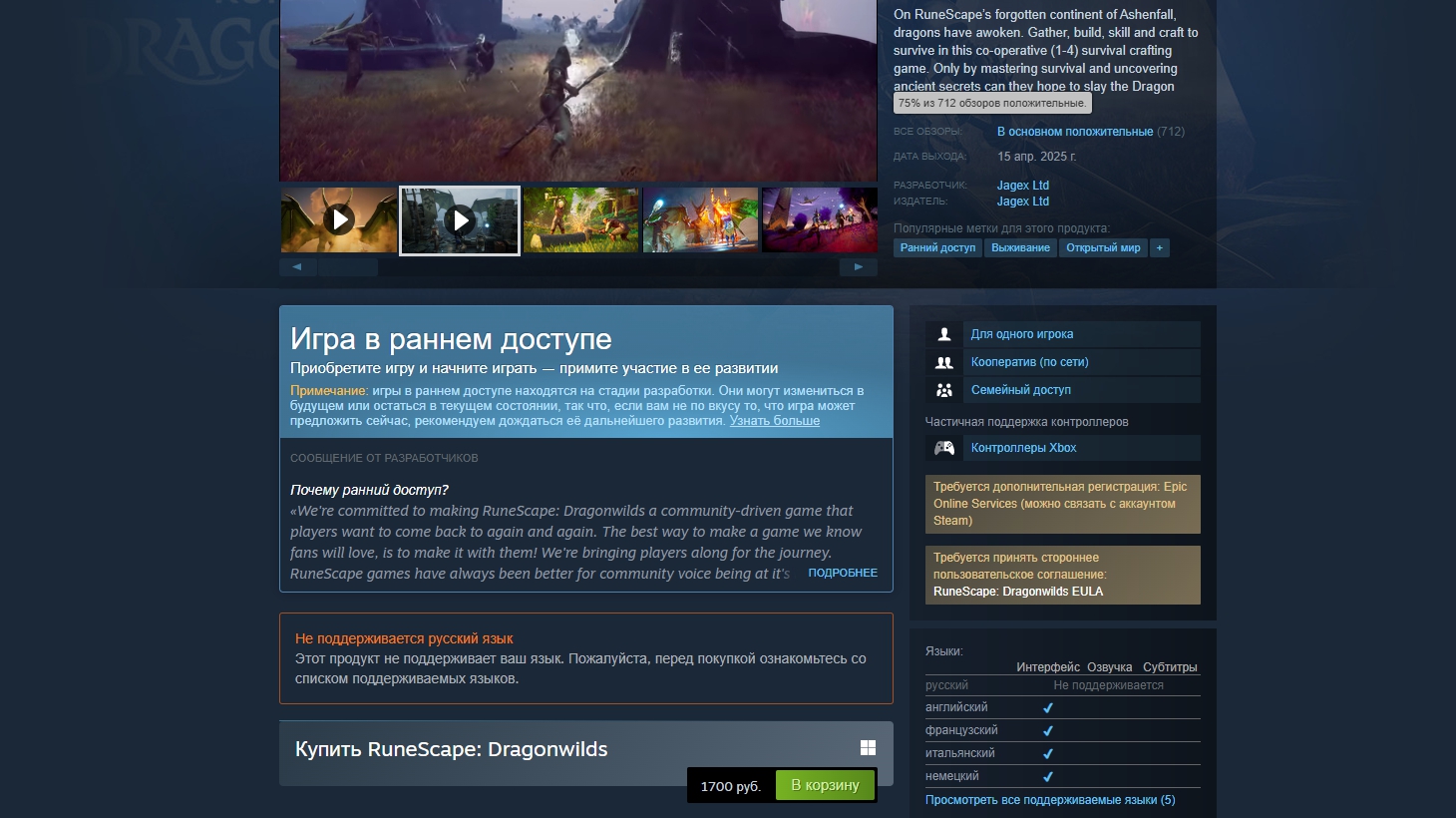 15 апреля команда Jagex выпустила RuneScape: Dragonwilds, новую игру по одноименной небезызвестной вселенной. Кооперативный выживач вышел в раннем доступе Steam и за минувший вечер получил свыше 700 «в основном положительных» отзывов.