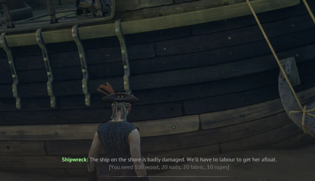 После того как вы собрали всех членов экипажа и подготовили необходимые ресурсы (100 древесины, 20 гвоздей, 10 веревок и 20 грубой ткани), вернитесь к месту крушения подходящего судна. Взаимодействуйте с обломками (выберите действие «Исследовать»), чтобы отремонтировать его и завершить задание. Теперь ваш новый корабль готов к выходу в море. Вернитесь на нем к своей первой базе и снова поговорите с доктором Галеном, который откроет следующий этап истории.
