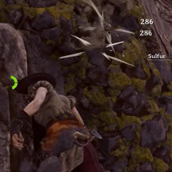 - Ищите желтоватые скопления на поверхности камней. Обычно на одном выступе находится от 2 до 3 таких сгустков, которые можно добыть.