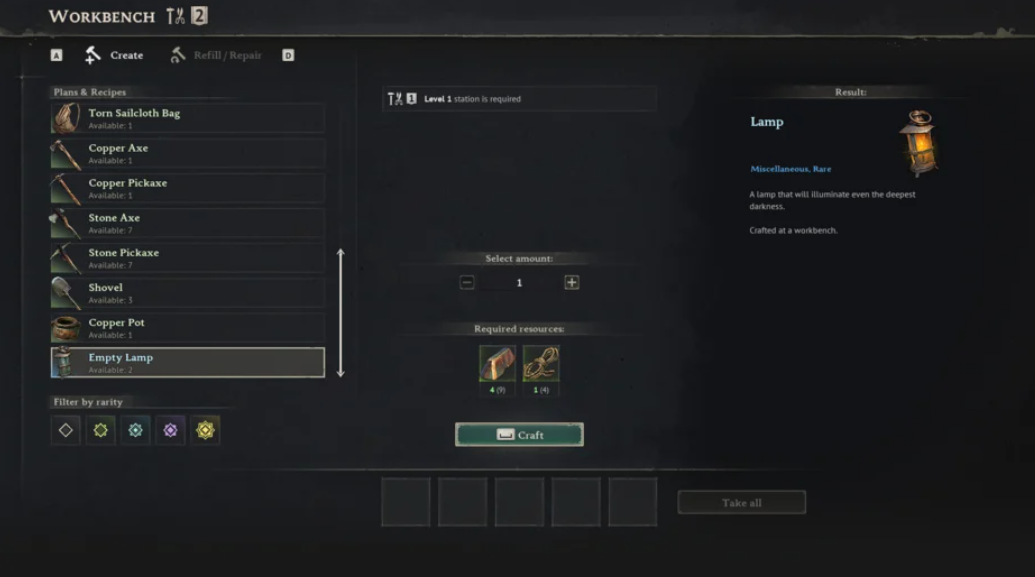 - Подойдите к верстаку, имея в инвентаре пустую лампу и жир.