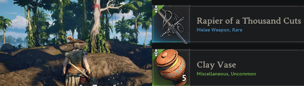 - Рапира тысячи порезов: сундук в лагере с красной тканью на дереве или квест «Подпольная сеть».
