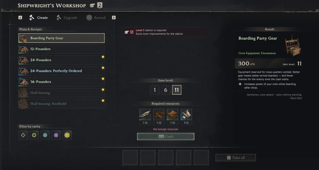 - Снаряжение для абордажной команды: повышает боевую мощь экипажа при захвате судов.