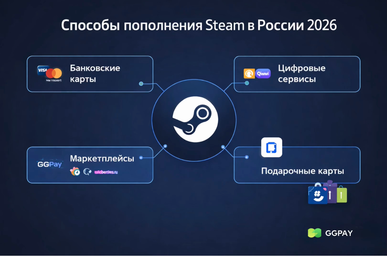 В 2026 году Steam из России пополняют через банки, цифровые маркетплейсы, платежные сервисы, операторов и подарочные карты. Ключевая проблема не в том, «есть комиссия или нет», а в фактической сумме, которая доходит до кошелька после конвертации и всех надбавок.