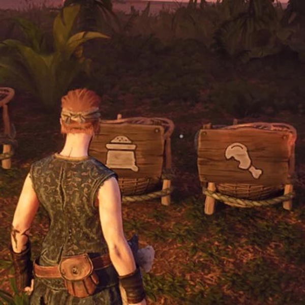 Совет: используйте тюки или мешки, так как они дают те же 28 ячеек, но не требуют гвоздей — дефицитного ресурса, необходимого для ремонта корабля. Также можно использовать деревянные таблички с изображениями ресурсов, чтобы навести порядок в сундуках. Помните золотое правило: не бросайте вещи на пол, всегда убирайте их в хранилище.