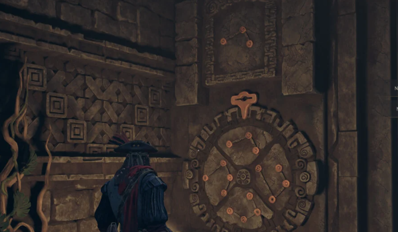 Перед входом в башню, представляющую собой небольшой зиккурат, вы увидите запертую дверь и две каменные плиты по бокам. Каждую плиту можно вращать, устанавливая одно из четырех положений.
