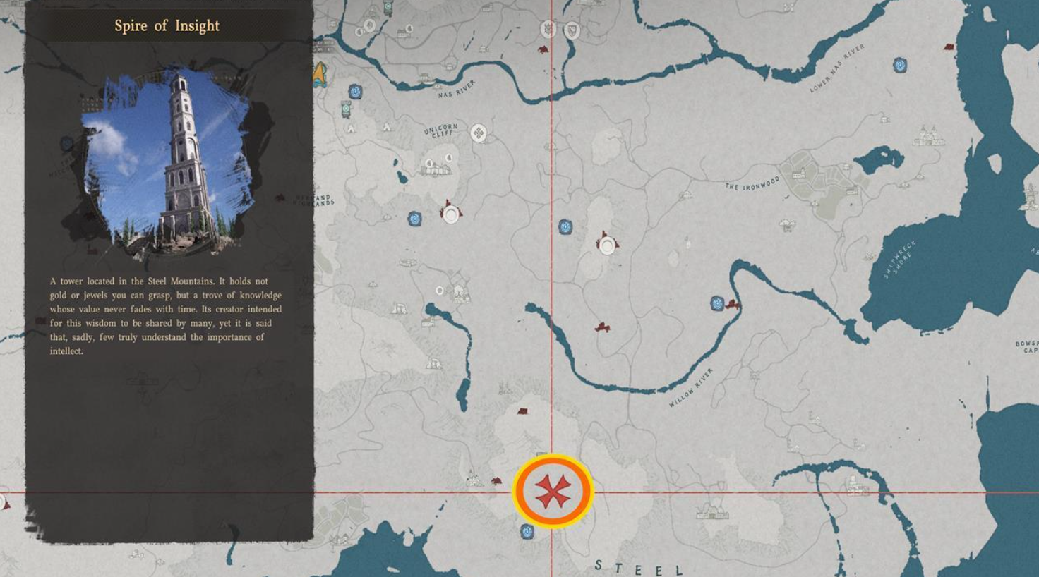 Шпиль Прозрения является дополнительной локацией, которую не обязательно посещать для завершения основного сюжета. Однако скрытые в нем секреты стоят того, чтобы отклониться от маршрута. Чтобы найти башню, отправляйтесь на юг от Эрнанда, проехав далеко за деревню Порорин. Вскоре вы увидите величественное строение, возвышающееся над горизонтом.
