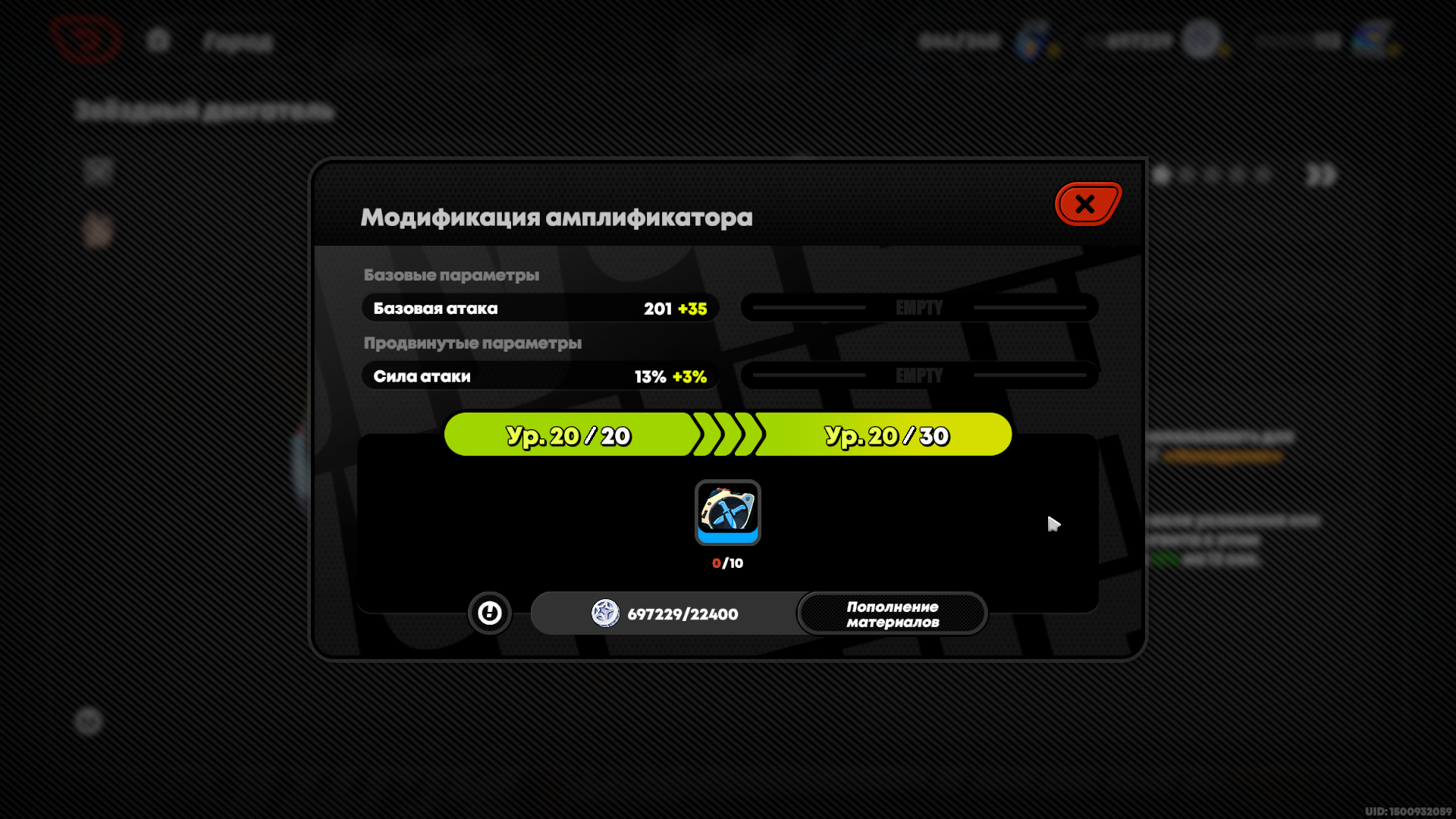 Для прокачки амплификатора вам нужно повысить его базовый уровень.