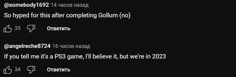 Геймеры удивлены анонсом. Многие сравнивают игру с проектом для PS2 или PS3, а также считают, что у The Lord of the Rings: Gollum появился достойный конкурент.