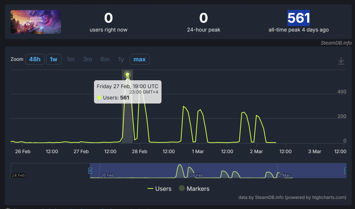 Незаметно подошел к концу публичный тест Horizon Hunters Gathering. И вы не поверите, но мультиплеерный спин-офф популярной франшизы от Guarilla Games не стал сенсацией. Судя по статистике собранной порталом SteamDB, на пике популярности в Steam бета-тесту удалось привлечь всего 561 игрока. К концу тестирования их и вовсе осталось около сотни.