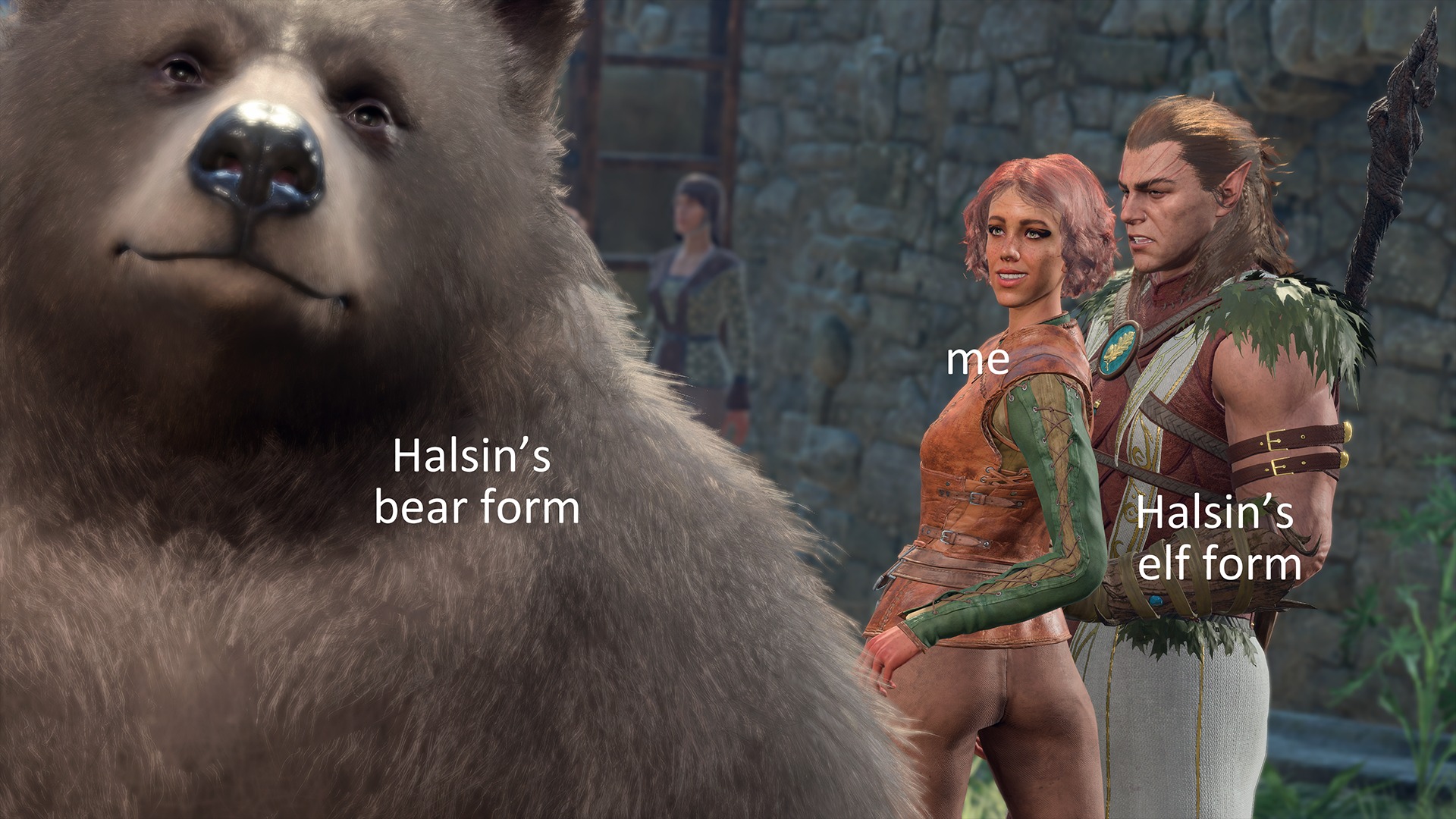 «Я, эльфийская форма Халсина, медвежья форма Халсина».