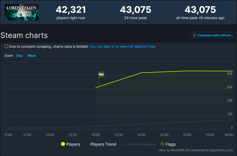 Пиратская группа FLT обошла защиту Steam и выложила кряк на Lords of the Fallen. В считанные минуты количество скачивающих и раздающих на популярных торрент-трекерах стало исчисляться сотнями людей. При этом онлайн игры не сказать, что сильно пострадал. Новинка неплохо стартовала в Steam, пиковый показатель единовременного числа игроков превысил 40 000 человек.