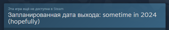 Также на странице в Steam указывается и дата выхода проекта (в еще старом формате). Разработчики «надеются», что его релиз состоится «где-то в 2024»:
