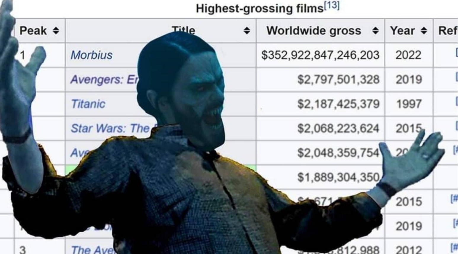 Вероятно, Sony переоценила мемную силу картины. Несмотря на то, что контент-мейкеры активно создавали смешные картинки и видео про «время морбить», никто никогда не утверждал, что супергеройский боевик с Лето достоин полноценного просмотра, потому что он относится к категории фильмов: «Это так плохо, что это хорошо». В конце концов, это не «Комната» Томми Вайсо!