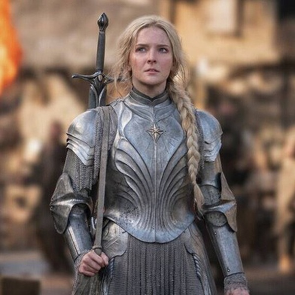 Галадриэль в броне настолько крута, что не смотрит на взрывы. Ее играет Морвед Кларк