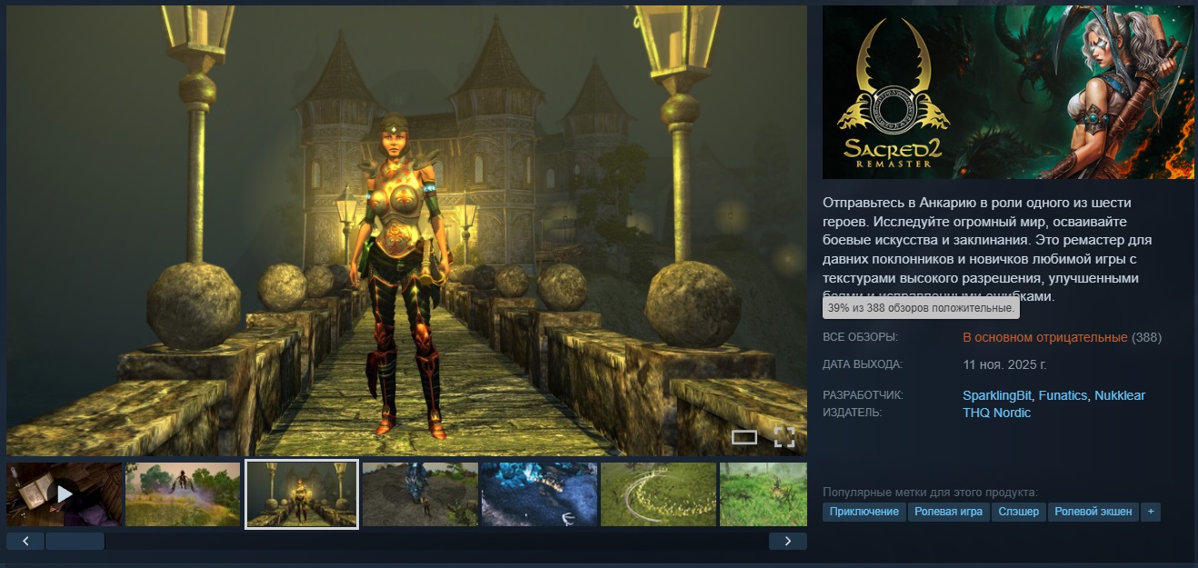 Sacred 2: Fallen Angel Remaster только вышла, но уже успела набрать множество негативных отзывов. Оценки игры опустились до «в основном отрицательных».