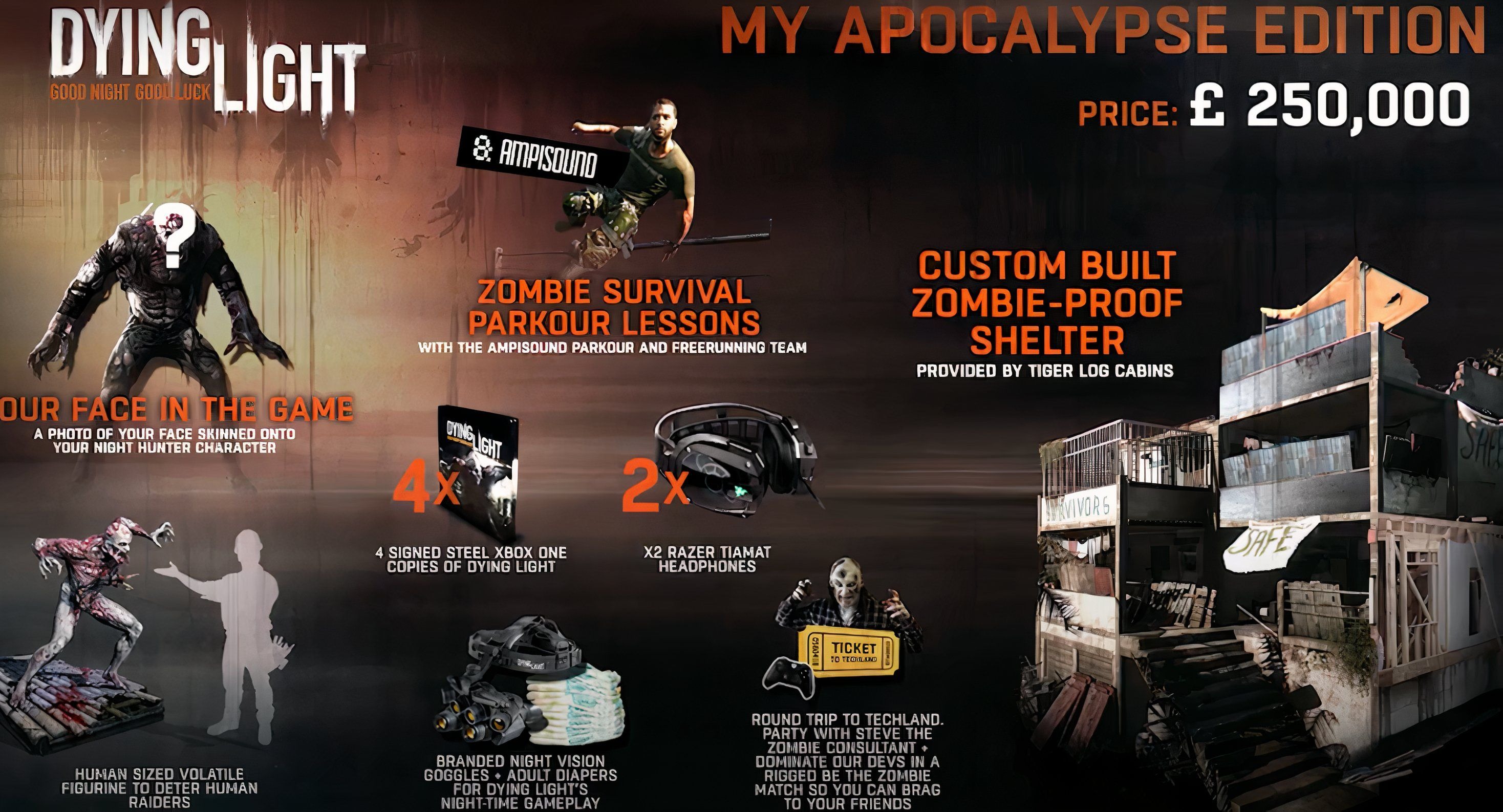 Как выяснилось, в мире не нашлось счастливчика, который сейчас живет в убежище на случай апокалипсиса с зомби. Никто это дорогое издание, которое стоило 250 тысяч фунтов, что на тот момент оценивалось в 386 тысяч долларов, так и не купил. Но Techland только счастлива. Потому что студия даже надеялась, что никто его не купит. У коллекционки была иная цель.