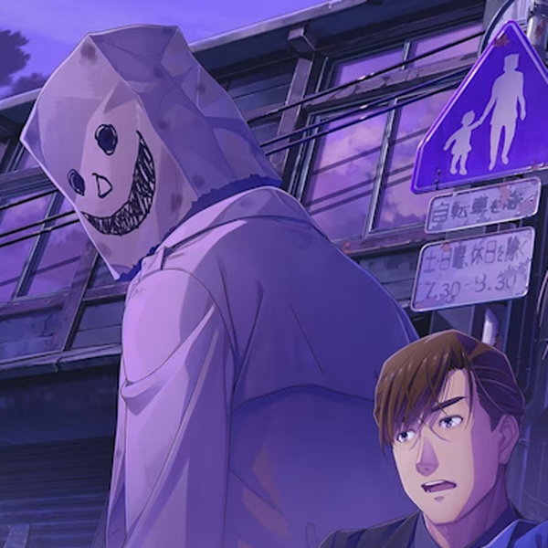 «Студент был найден мертвым! Его голова была накрыта бумажным пакетом с нарисованным на нем жутким улыбающимся лицом — совсем как у жертв Эмио, "Улыбающегося человека", известного убийцы из городской легенды, по слухам надевающего такой пакет на голову своим жертвам.