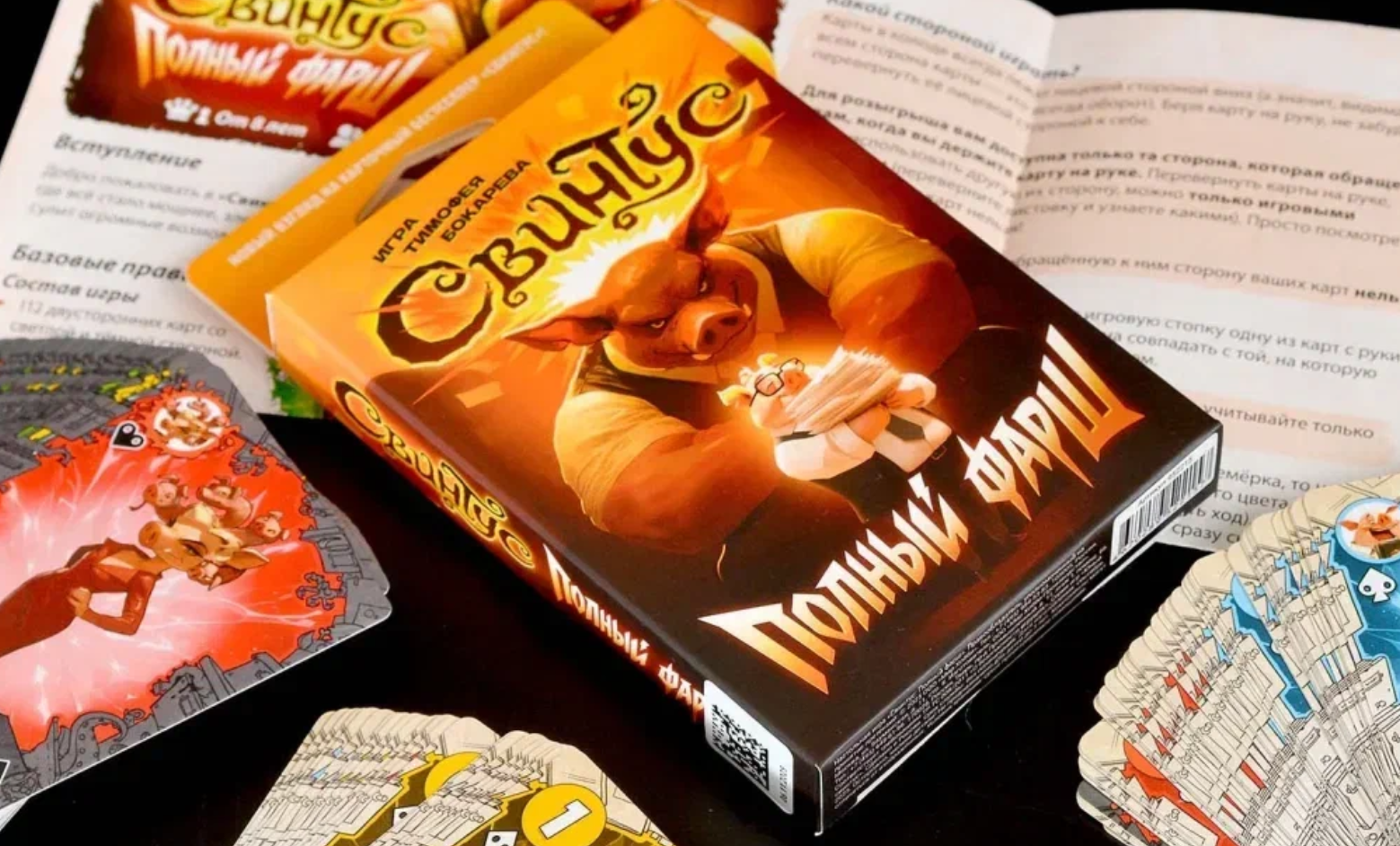 «Свинтус: Полный фарш» сохраняет дух классического «Свинтуса», но удивит игроков новой механикой: теперь каждая карта имеет две стороны, и в любой момент вы можете перевернуть её, выбрав один из двух эффектов. Цель остаётся прежней — первым избавиться от всех карт на руках. Однако двусторонние карты добавляют игре глубины: нужно не просто следовать привычным тактикам, а ловить момент, просчитывать последствия и использовать возможности с максимальной выгодой. Атмосфера дружеских подстав и неожиданных поворотов делает игру захватывающей для компаний от 2 до 8 человек.